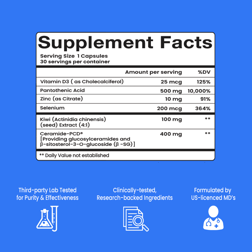 Simply take 1 capsules of Clear Skin with a meal or snack each day.